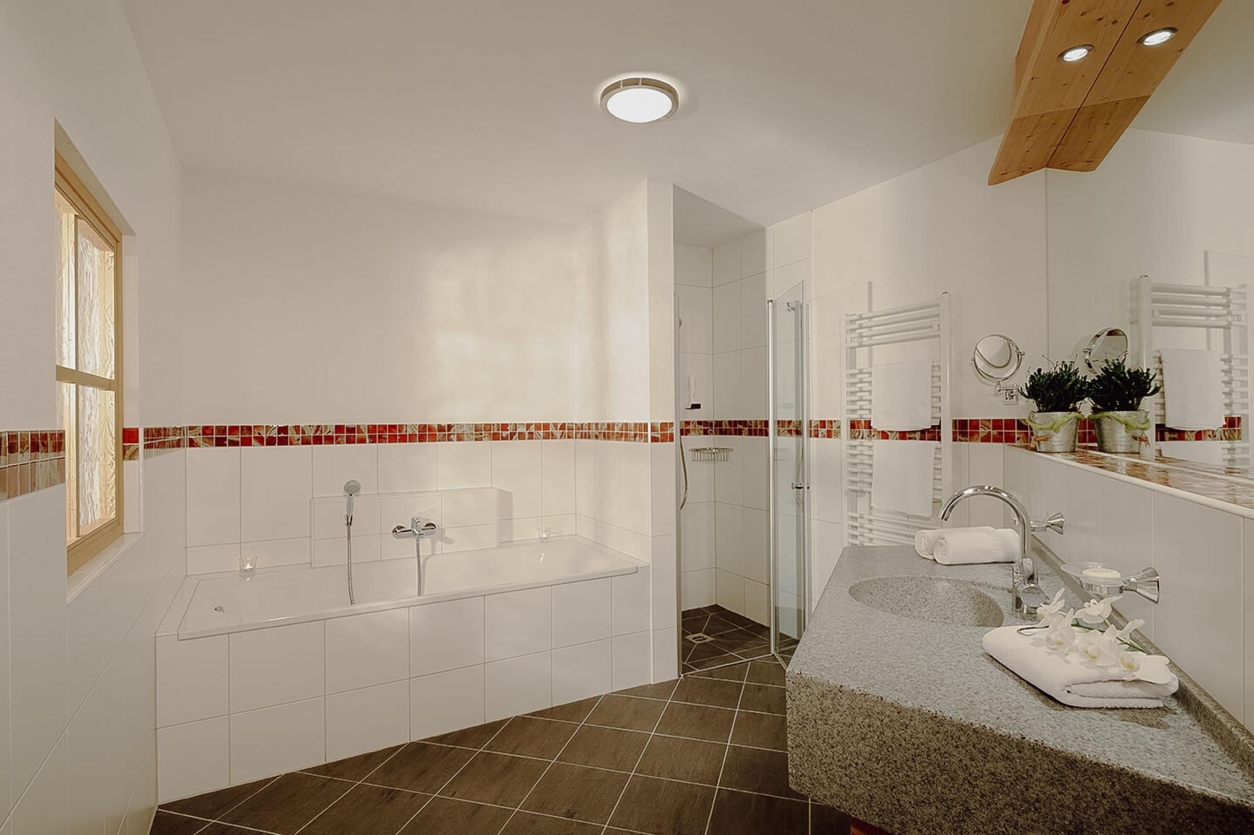FOR COSYING UP: A wellness bag, including cosy bathing robe is already packed for you. Bring your own bathing slippers with you or, for a small fee, collect a pair from us at Reception